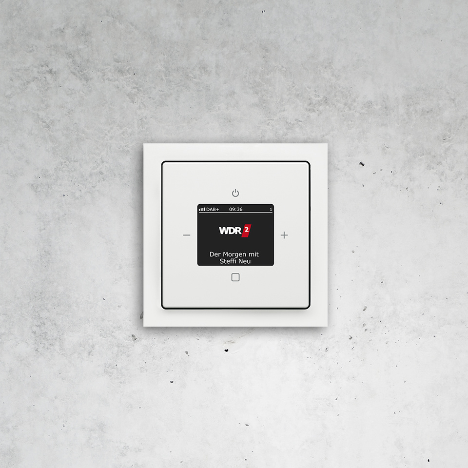 unterschiedlichen Ausführungen. Das Radio integriert sich nahezu unsichtbar in den Raum und ist einfach mit allen Busch-Jaeger Schalterserien kompatibel.